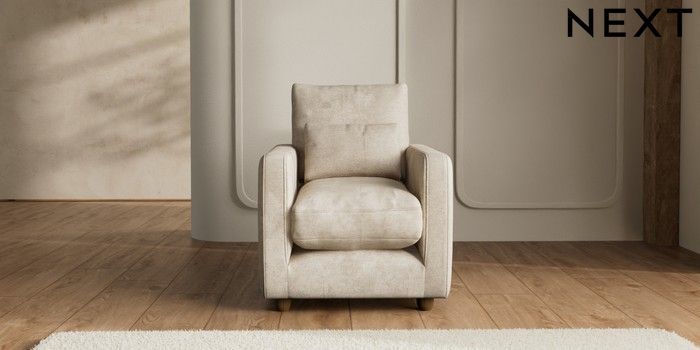 7.2.6 Buy N Premium Farndon Grand Relaxed Sit Armchair Plush Chenille Light Natural Wooden Glide - Mid from the Laura Ashley online shop Click here to use our website with more accessibility support, for example screen readers