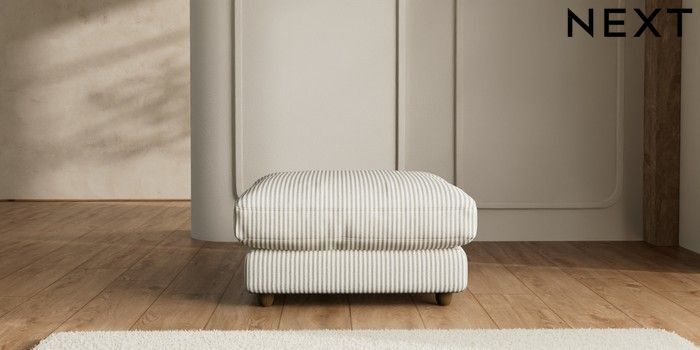 7.2.6 Buy N Premium Farndon Grand Relaxed Sit Extra Large Footstool Chenille Stripe Moss Green Wooden Glide - Mid from the Laura Ashley online shop Click here to use our website with more accessibility support, for example screen readers