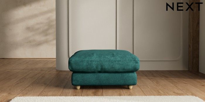 7.2.6 Buy N Premium Farndon Grand Relaxed Sit Extra Large Footstool Plush Chenille Dark Teal Green Wooden Glide - Light from the Laura Ashley online shop Click here to use our website with more accessibility support, for example screen readers