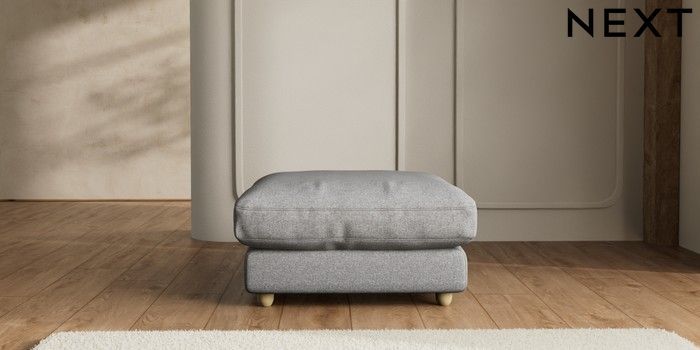7.2.6 Buy N Premium Farndon Grand Relaxed Sit Extra Large Footstool Studio Chenille Mid Grey Wooden Glide - Light from the Laura Ashley online shop Click here to use our website with more accessibility support, for example screen readers