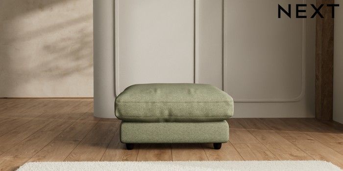 7.2.6 Buy N Premium Farndon Grand Relaxed Sit Extra Large Footstool Tweedy Chenille Mid Moss Green Wooden Glide - Dark from the Laura Ashley online shop Click here to use our website with more accessibility support, for example screen readers