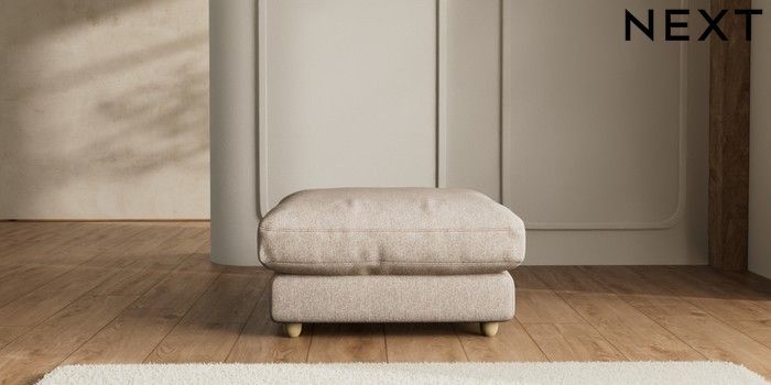 7.2.6 Buy N Premium Farndon Grand Relaxed Sit Extra Large Footstool Tweedy Chenille Mid Natural Wooden Glide - Light from the Laura Ashley online shop Click here to use our website with more accessibility support, for example screen readers