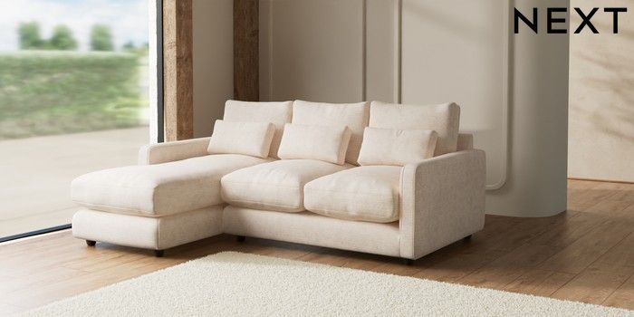 7.2.6 Buy N Premium Farndon Grand Relaxed Sit Medium Sofa Chaise - Left Hand Boucle Chenille Oyster Wooden Glide - Mid from the Laura Ashley online shop Click here to use our website with more accessibility support, for example screen readers