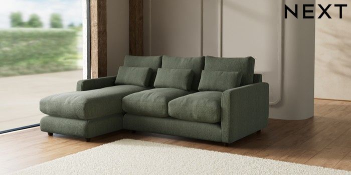 7.2.6 Buy N Premium Farndon Grand Relaxed Sit Medium Sofa Chaise - Left Hand Chunky Texture Mid Forest Green Wooden Glide - Mid from the Laura Ashley online shop Click here to use our website with more accessibility support, for example screen readers