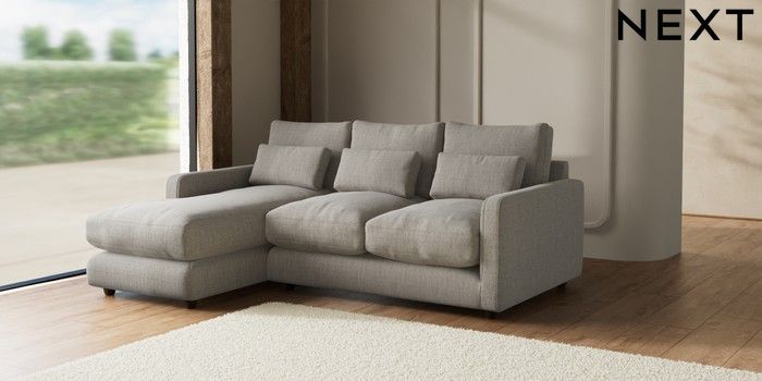 7.2.6 Buy N Premium Farndon Grand Relaxed Sit Medium Sofa Chaise - Left Hand Chunky Weave Dove Grey Wooden Glide - Mid from the Laura Ashley online shop Click here to use our website with more accessibility support, for example screen readers
