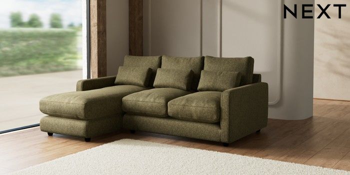 7.2.6 Buy N Premium Farndon Grand Relaxed Sit Medium Sofa Chaise - Left Hand Cotswold Chenille Dark Green Wooden Glide - Dark from the Laura Ashley online shop Click here to use our website with more accessibility support, for example screen readers