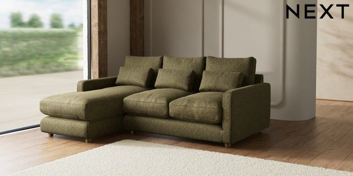 7.2.6 Buy N Premium Farndon Grand Relaxed Sit Medium Sofa Chaise - Left Hand Cotswold Chenille Dark Green Wooden Glide - Light from the Laura Ashley online shop Click here to use our website with more accessibility support, for example screen readers