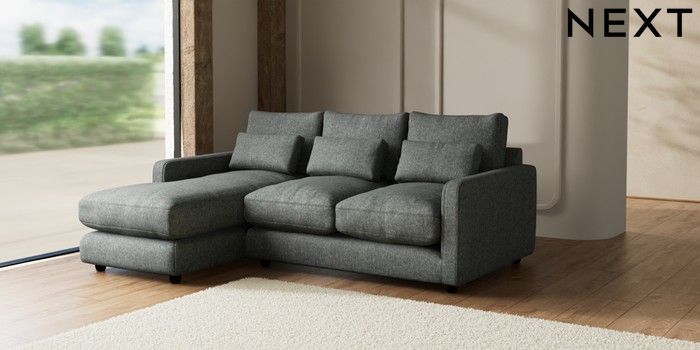7.2.6 Buy N Premium Farndon Grand Relaxed Sit Medium Sofa Chaise - Left Hand Cotswold Chenille Dark Grey Wooden Glide - Dark from the Laura Ashley online shop Click here to use our website with more accessibility support, for example screen readers