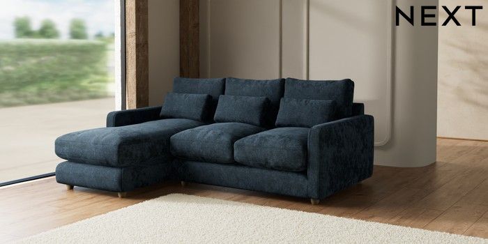 7.2.6 Buy N Premium Farndon Grand Relaxed Sit Medium Sofa Chaise - Left Hand Distressed Velour Midnight Blue Wooden Glide - Light from the Laura Ashley online shop Click here to use our website with more accessibility support, for example screen readers