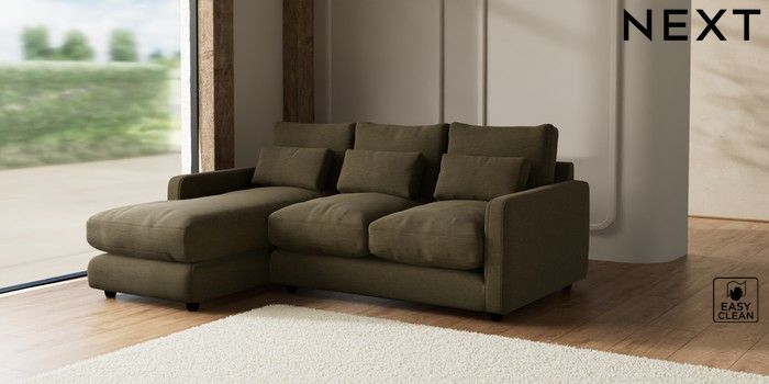 7.2.6 Buy N Premium Farndon Grand Relaxed Sit Medium Sofa Chaise - Left Hand Fine Chenille Easy Clean Dark Moss Green Wooden Glide - Dark from the Laura Ashley online shop Click here to use our website with more accessibility support, for example screen readers