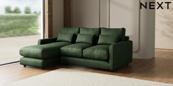 7.2.6 Buy N Premium Farndon Grand Relaxed Sit Medium Sofa Chaise - Left Hand Luxe Chenille Dark Green Wooden Glide - Mid from the Laura Ashley online shop Click here to use our website with more accessibility support, for example screen readers