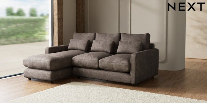 7.2.6 Buy N Premium Farndon Grand Relaxed Sit Medium Sofa Chaise - Left Hand Plush Chenille Mink Brown Wooden Glide - Mid from the Laura Ashley online shop Click here to use our website with more accessibility support, for example screen readers