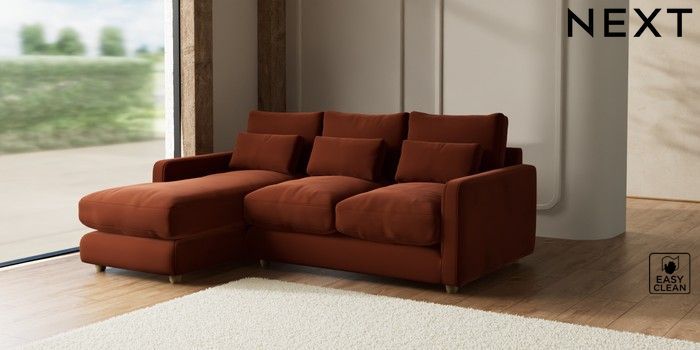 7.2.6 Buy N Premium Farndon Grand Relaxed Sit Medium Sofa Chaise - Left Hand Plush Velvet Easy Clean Ginger Orange Wooden Glide - Light from the Laura Ashley online shop Click here to use our website with more accessibility support, for example screen readers