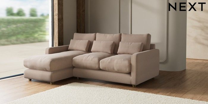 7.2.6 Buy N Premium Farndon Grand Relaxed Sit Medium Sofa Chaise - Left Hand Relaxed Linen Look Mid Natural Wooden Glide - Light from the Laura Ashley online shop Click here to use our website with more accessibility support, for example screen readers