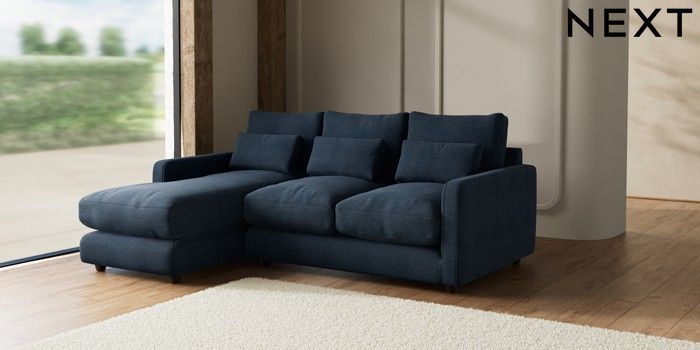 7.2.6 Buy N Premium Farndon Grand Relaxed Sit Medium Sofa Chaise - Left Hand Ripple Chenille Dark Blue Wooden Glide - Mid from the Laura Ashley online shop Click here to use our website with more accessibility support, for example screen readers