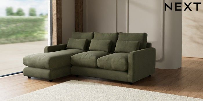 7.2.6 Buy N Premium Farndon Grand Relaxed Sit Medium Sofa Chaise - Left Hand Ripple Chenille Mid Moss Green Wooden Glide - Dark from the Laura Ashley online shop Click here to use our website with more accessibility support, for example screen readers