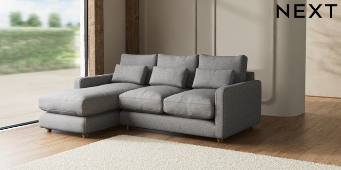 7.2.6 Buy N Premium Farndon Grand Relaxed Sit Medium Sofa Chaise - Left Hand Studio Chenille Mid Grey Wooden Glide - Light from the Laura Ashley online shop Click here to use our website with more accessibility support, for example screen readers