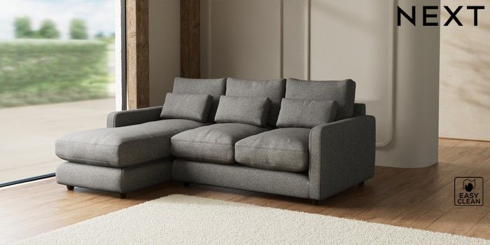 7.2.6 Buy N Premium Farndon Grand Relaxed Sit Medium Sofa Chaise - Left Hand Tweedy Blend Easy Clean Dark Grey Wooden Glide - Mid from the Laura Ashley online shop Click here to use our website with more accessibility support, for example screen readers