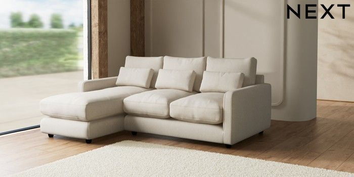 7.2.6 Buy N Premium Farndon Grand Relaxed Sit Medium Sofa Chaise - Left Hand Tweedy Chenille Oyster Wooden Glide - Dark from the Laura Ashley online shop Click here to use our website with more accessibility support, for example screen readers