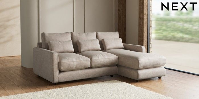 7.2.6 Buy N Premium Farndon Grand Relaxed Sit Medium Sofa Chaise - Right Hand Boucle Chenille Light Natural Wooden Glide - Mid from the Laura Ashley online shop Click here to use our website with more accessibility support, for example screen readers