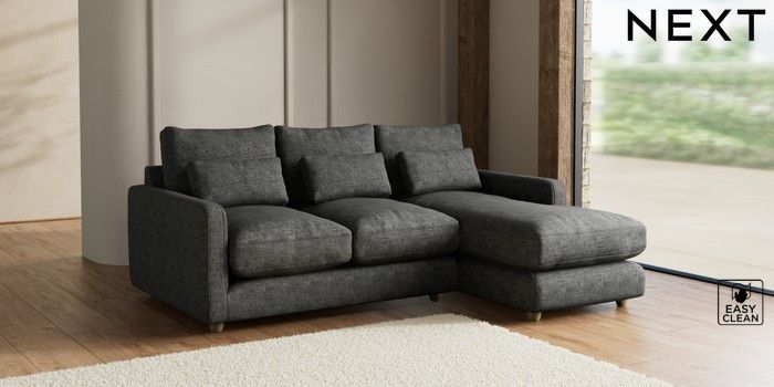 7.2.6 Buy N Premium Farndon Grand Relaxed Sit Medium Sofa Chaise - Right Hand Boucle Weave Easy Clean Charcoal Grey Wooden Glide - Light from the Laura Ashley online shop Click here to use our website with more accessibility support, for example screen readers