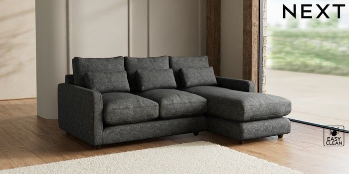 7.2.6 Buy N Premium Farndon Grand Relaxed Sit Medium Sofa Chaise - Right Hand Boucle Weave Easy Clean Charcoal Grey Wooden Glide - Mid from the Laura Ashley online shop Click here to use our website with more accessibility support, for example screen readers
