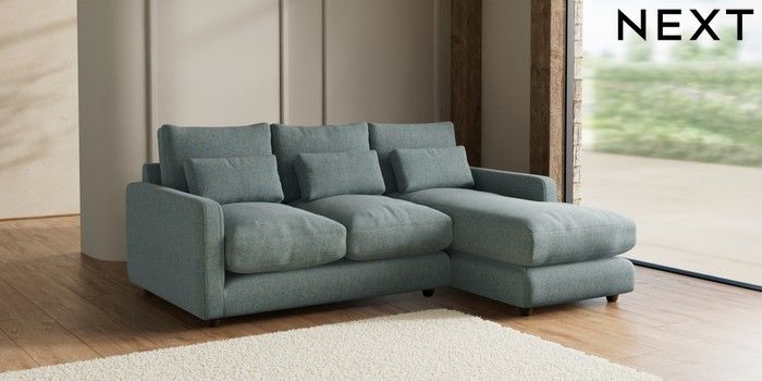 7.2.6 Buy N Premium Farndon Grand Relaxed Sit Medium Sofa Chaise - Right Hand Chunky Marl Mid Blue Wooden Glide - Mid from the Laura Ashley online shop Click here to use our website with more accessibility support, for example screen readers