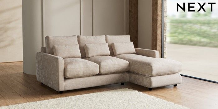 7.2.6 Buy N Premium Farndon Grand Relaxed Sit Medium Sofa Chaise - Right Hand Distressed Velour Mid Natural Wooden Glide - Dark from the Laura Ashley online shop Click here to use our website with more accessibility support, for example screen readers
