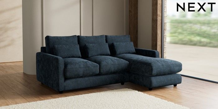 7.2.6 Buy N Premium Farndon Grand Relaxed Sit Medium Sofa Chaise - Right Hand Distressed Velour Midnight Blue Wooden Glide - Dark from the Laura Ashley online shop Click here to use our website with more accessibility support, for example screen readers