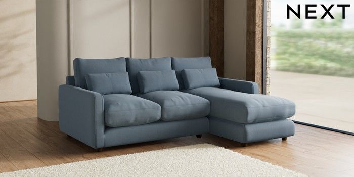 7.2.6 Buy N Premium Farndon Grand Relaxed Sit Medium Sofa Chaise - Right Hand Relaxed Linen Look Mid Blue Wooden Glide - Mid from the Laura Ashley online shop Click here to use our website with more accessibility support, for example screen readers