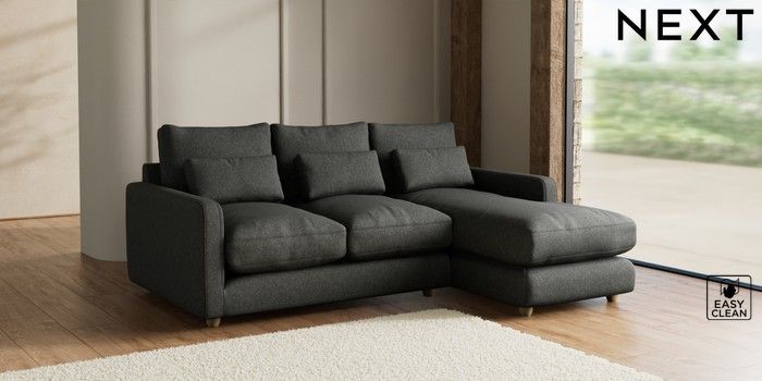 7.2.6 Buy N Premium Farndon Grand Relaxed Sit Medium Sofa Chaise - Right Hand Tweedy Blend Easy Clean Charcoal Grey Wooden Glide - Light from the Laura Ashley online shop Click here to use our website with more accessibility support, for example screen readers