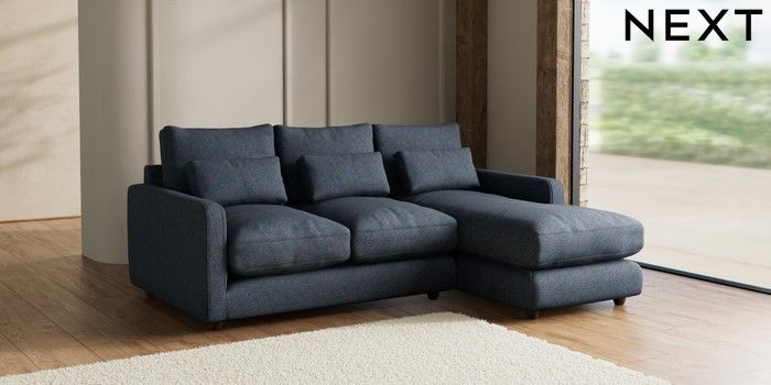 7.2.6 Buy N Premium Farndon Grand Relaxed Sit Medium Sofa Chaise - Right Hand Tweedy Chenille Navy Blue Wooden Glide - Mid from the Laura Ashley online shop Click here to use our website with more accessibility support, for example screen readers