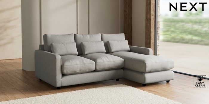 7.2.6 Buy N Premium Farndon Grand Relaxed Sit Medium Sofa Chaise - Right Hand Woven Chenille Easy Clean Light Grey Wooden Glide - Dark from the Laura Ashley online shop Click here to use our website with more accessibility support, for example screen readers