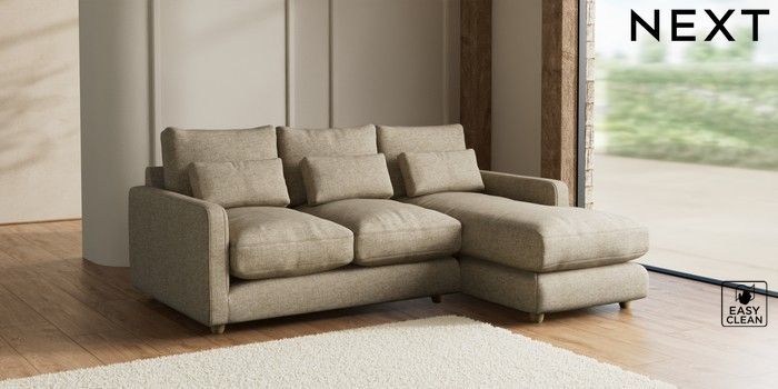 7.2.6 Buy N Premium Farndon Grand Relaxed Sit Medium Sofa Chaise - Right Hand Woven Chenille Easy Clean Mid Natural Wooden Glide - Light from the Laura Ashley online shop Click here to use our website with more accessibility support, for example screen readers