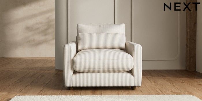 7.2.6 Buy N Premium Farndon Grand Relaxed Sit Snuggle Chenille Stripe Natural Wooden Glide - Mid from the Laura Ashley online shop Click here to use our website with more accessibility support, for example screen readers