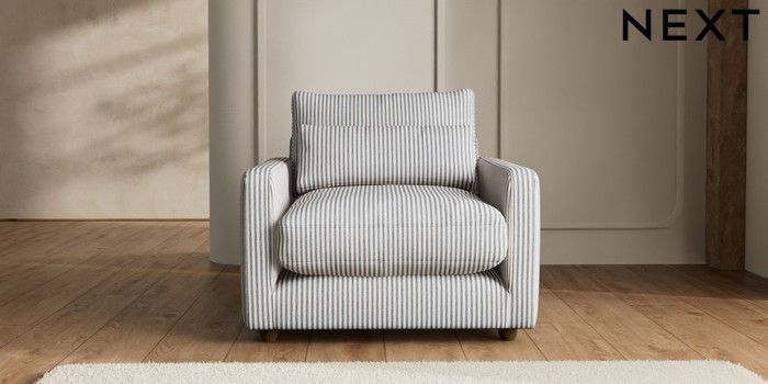 7.2.6 Buy N Premium Farndon Grand Relaxed Sit Snuggle Chenille Stripe Slate Blue Wooden Glide - Mid from the Laura Ashley online shop Click here to use our website with more accessibility support, for example screen readers