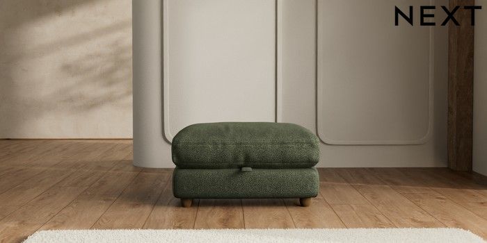 7.2.6 Buy N Premium Farndon Grand Relaxed Sit Storage Footstool Boucle Chenille Dark Moss Green Wooden Glide - Mid from the Laura Ashley online shop Click here to use our website with more accessibility support, for example screen readers