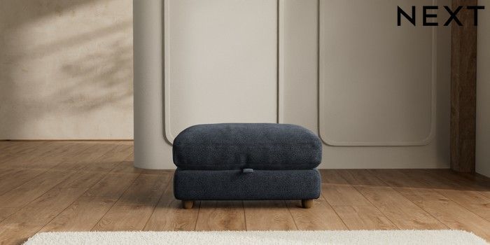 7.2.6 Buy N Premium Farndon Grand Relaxed Sit Storage Footstool Boucle Chenille Dark Slate Blue Wooden Glide - Mid from the Laura Ashley online shop Click here to use our website with more accessibility support, for example screen readers