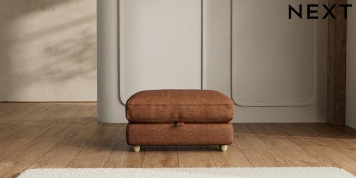 7.2.6 Buy N Premium Farndon Grand Relaxed Sit Storage Footstool Monza Faux Leather Easy Clean Chestnut Brown Wooden Glide - Light from the Laura Ashley online shop Click here to use our website with more accessibility support, for example screen readers
