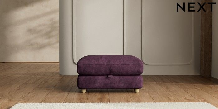 7.2.6 Buy N Premium Farndon Grand Relaxed Sit Storage Footstool Plush Chenille Dark Plum Purple Wooden Glide - Light from the Laura Ashley online shop Click here to use our website with more accessibility support, for example screen readers