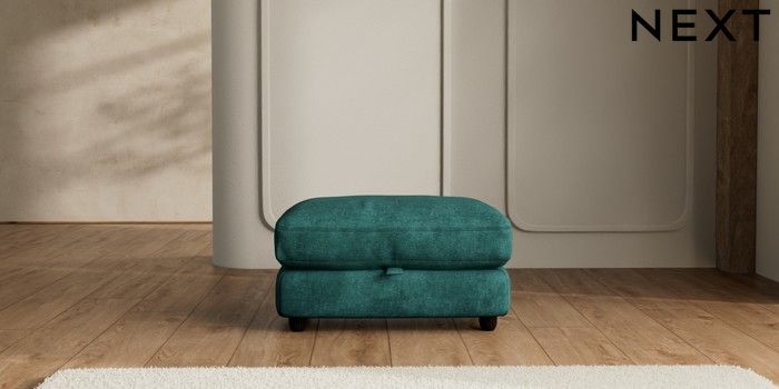 7.2.6 Buy N Premium Farndon Grand Relaxed Sit Storage Footstool Plush Chenille Dark Teal Green Wooden Glide - Dark from the Laura Ashley online shop Click here to use our website with more accessibility support, for example screen readers
