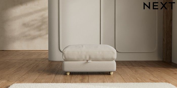 7.2.6 Buy N Premium Farndon Grand Relaxed Sit Storage Footstool Studio Chenille Oyster Wooden Glide - Light from the Laura Ashley online shop Click here to use our website with more accessibility support, for example screen readers
