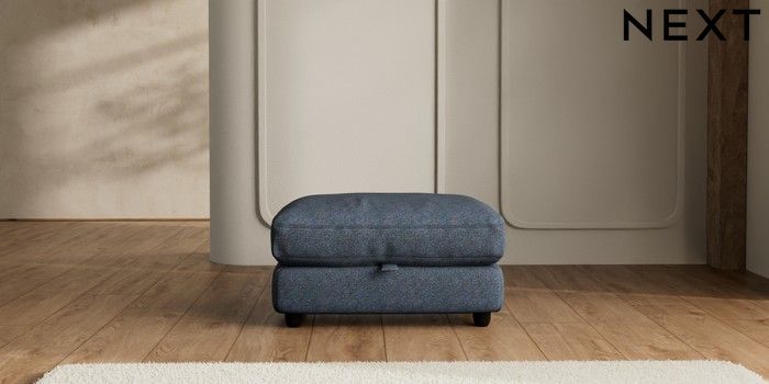 7.2.6 Buy N Premium Farndon Grand Relaxed Sit Storage Footstool Tweedy Chenille Navy Blue Wooden Glide - Dark from the Laura Ashley online shop Click here to use our website with more accessibility support, for example screen readers