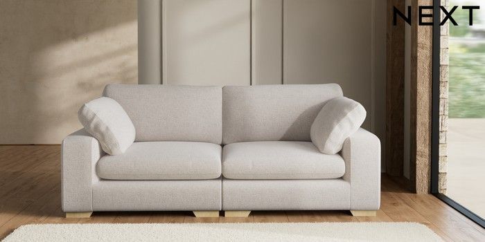 7.2.6 Buy N Premium The Snuggle Grand 4 Seater Large Sofa Multi Weave Oyster Large Square Angle - Light from the Laura Ashley online shop Click here to use our website with more accessibility support, for example screen readers