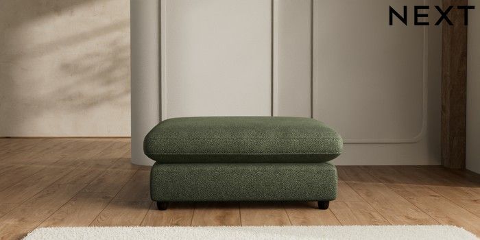 7.2.6 Buy N Premium The Snuggle Grand Extra Large Footstool Boucle Chenille Dark Moss Green Wooden Glide - Dark from the Laura Ashley online shop Click here to use our website with more accessibility support, for example screen readers
