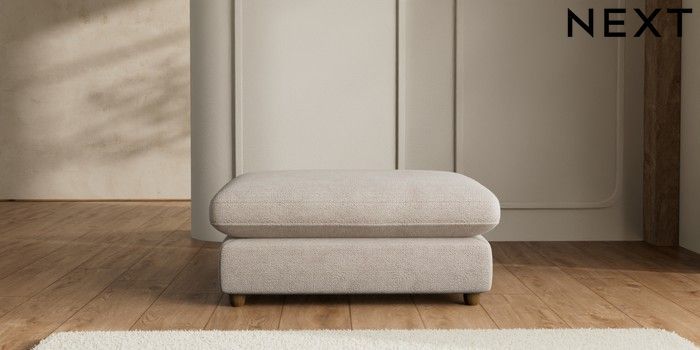 7.2.6 Buy N Premium The Snuggle Grand Extra Large Footstool Boucle Chenille Light Natural Wooden Glide - Mid from the Laura Ashley online shop Click here to use our website with more accessibility support, for example screen readers