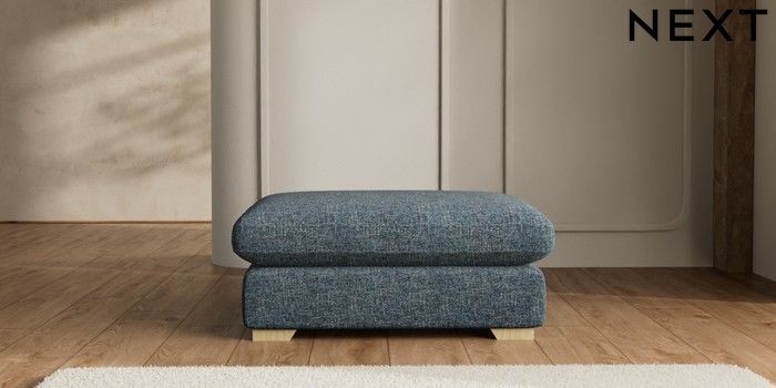 7.2.6 Buy N Premium The Snuggle Grand Extra Large Footstool Chunky Chenille Dark Navy Blue Square Angle - Light from the Laura Ashley online shop Click here to use our website with more accessibility support, for example screen readers