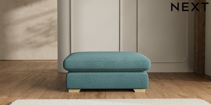 7.2.6 Buy N Premium The Snuggle Grand Extra Large Footstool Chunky Chenille Mid Teal Green Square Angle - Light from the Laura Ashley online shop Click here to use our website with more accessibility support, for example screen readers