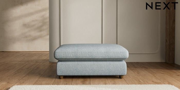 7.2.6 Buy N Premium The Snuggle Grand Extra Large Footstool Chunky Weave Mid Blue Wooden Glide - Mid from the Laura Ashley online shop Click here to use our website with more accessibility support, for example screen readers