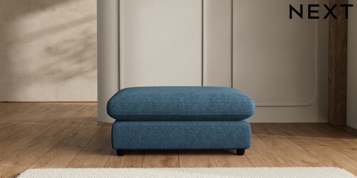 7.2.6 Buy N Premium The Snuggle Grand Extra Large Footstool Cotswold Chenille Dark Blue Wooden Glide - Dark from the Laura Ashley online shop Click here to use our website with more accessibility support, for example screen readers